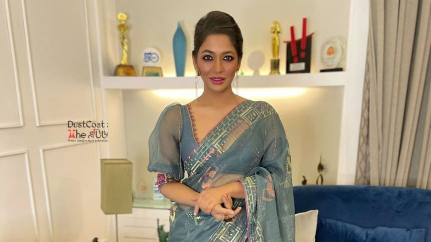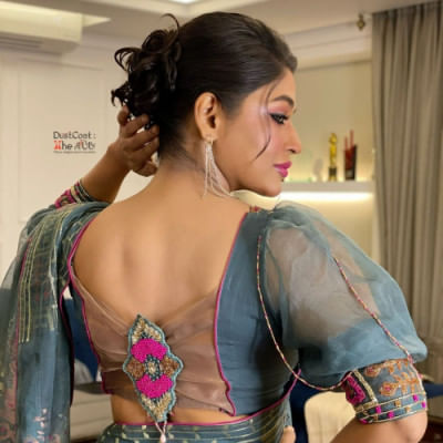 ডাস্টকোট: দ্য ব্লাউজ ব্র্যান্ডের ব্লাউজগুলো শুধু যেন পোশাক নয়, কারুশিল্প এবং সৃজনশীলতার এক সম্মিলন। ব্র্যান্ডটি যেন ঐতিহ্য ও সমসাময়িক সৌন্দর্যের নিখুঁত মিশ্রণ। আর আজমেরী হক বাঁধন এই ফিউশনের জন্য উপযুক্ত ক্যানভাস।